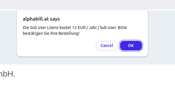 Das System wird Sie über die Mehrkosten durch die Aktivierung eines neuen Benutzers erinnern: